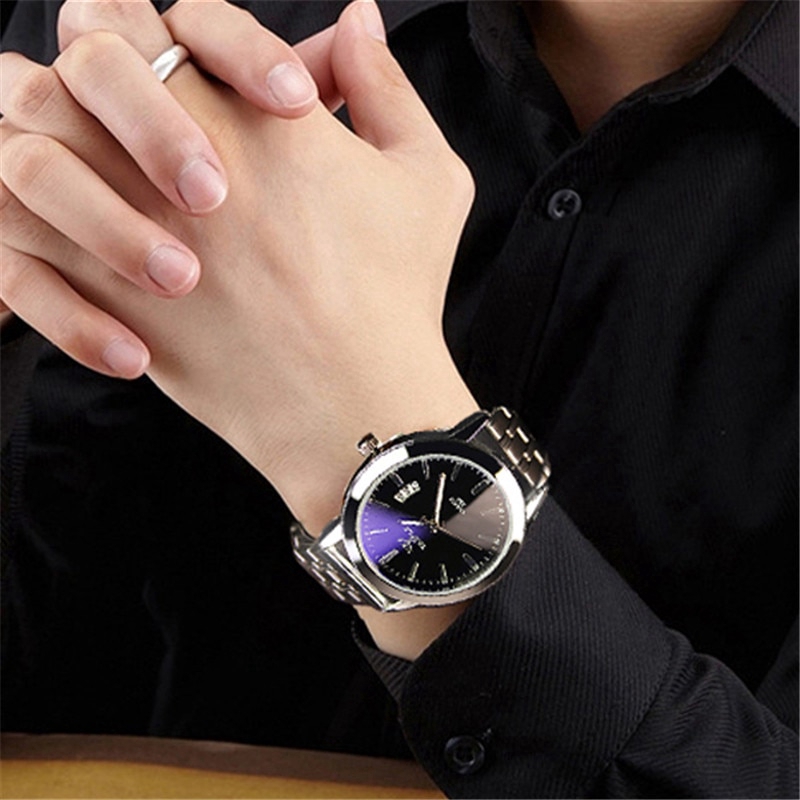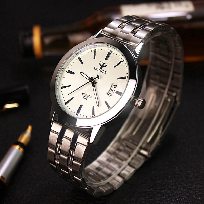 Yazole Bisnis Jam Tangan Pria Calendar Besi Tahan Karat Laki Laki Kuarsa Arloji Tahan Airc Jam Shopee Indonesia
