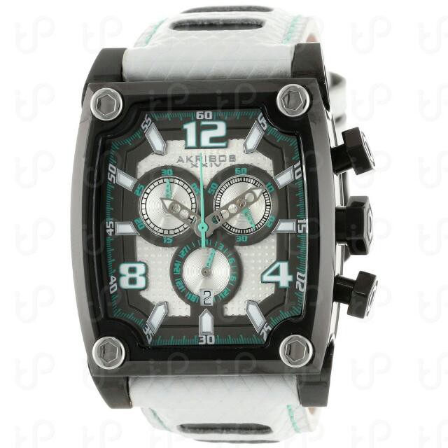 Akribos Xxiv Men S Ak611wt Explorer Swiss Chronograph White Leather Strap Watch Shopee Malaysia