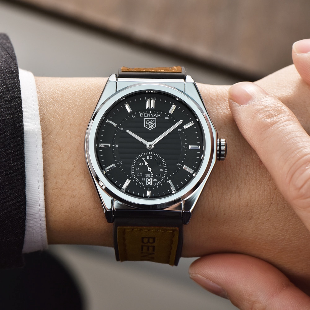 Benyar Jam Tangan Bisnis Quartz Analog Anti Air Dengan Strap Kulit Warna Hitam Shopee Indonesia