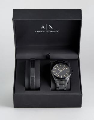 Armani Exchange Matte Black Watch And Bracelet Gift Set Fashion Watch For Men A X Online Store