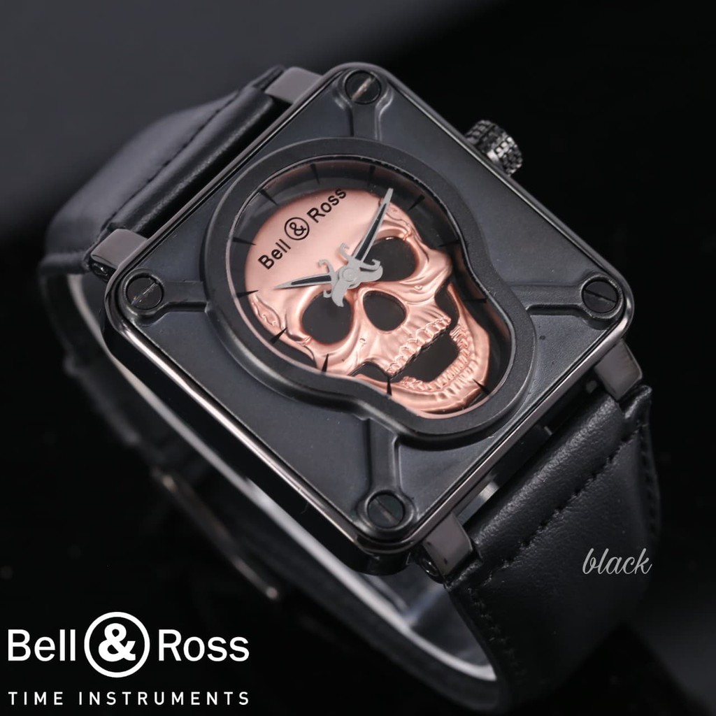 Jam Tangan Pria Cowok Bell Ross Tengkorak Leather Black Rosegold Shopee Indonesia