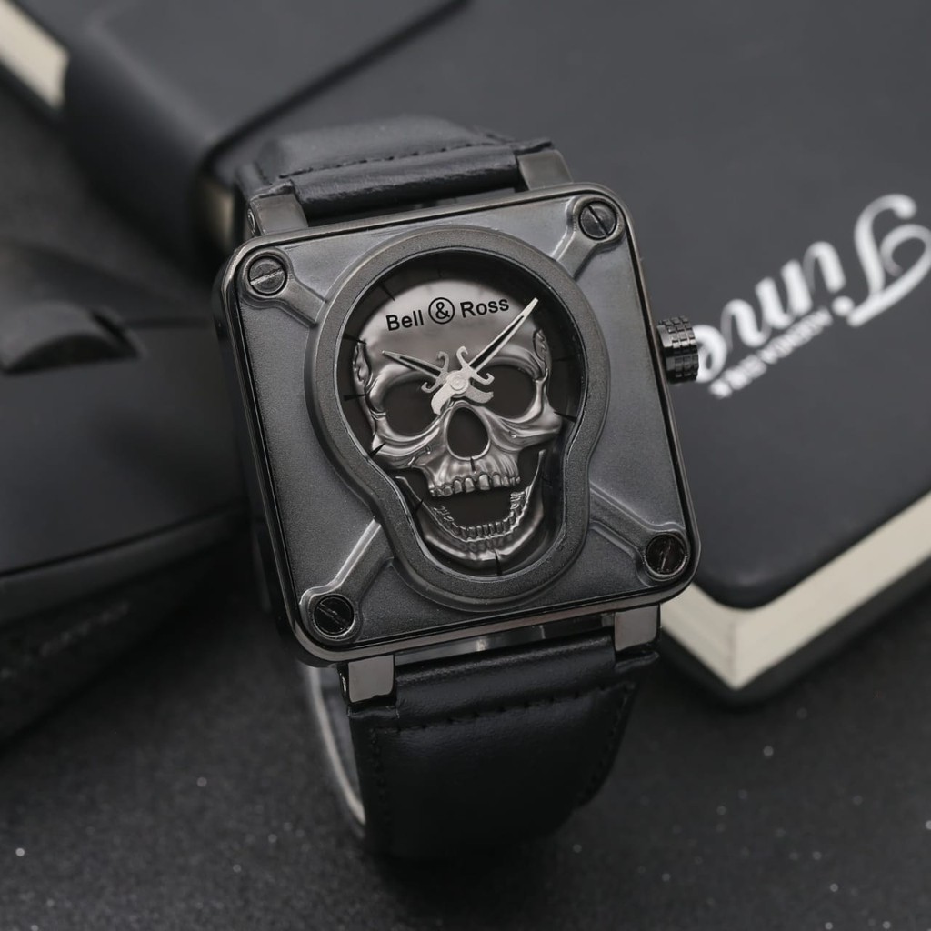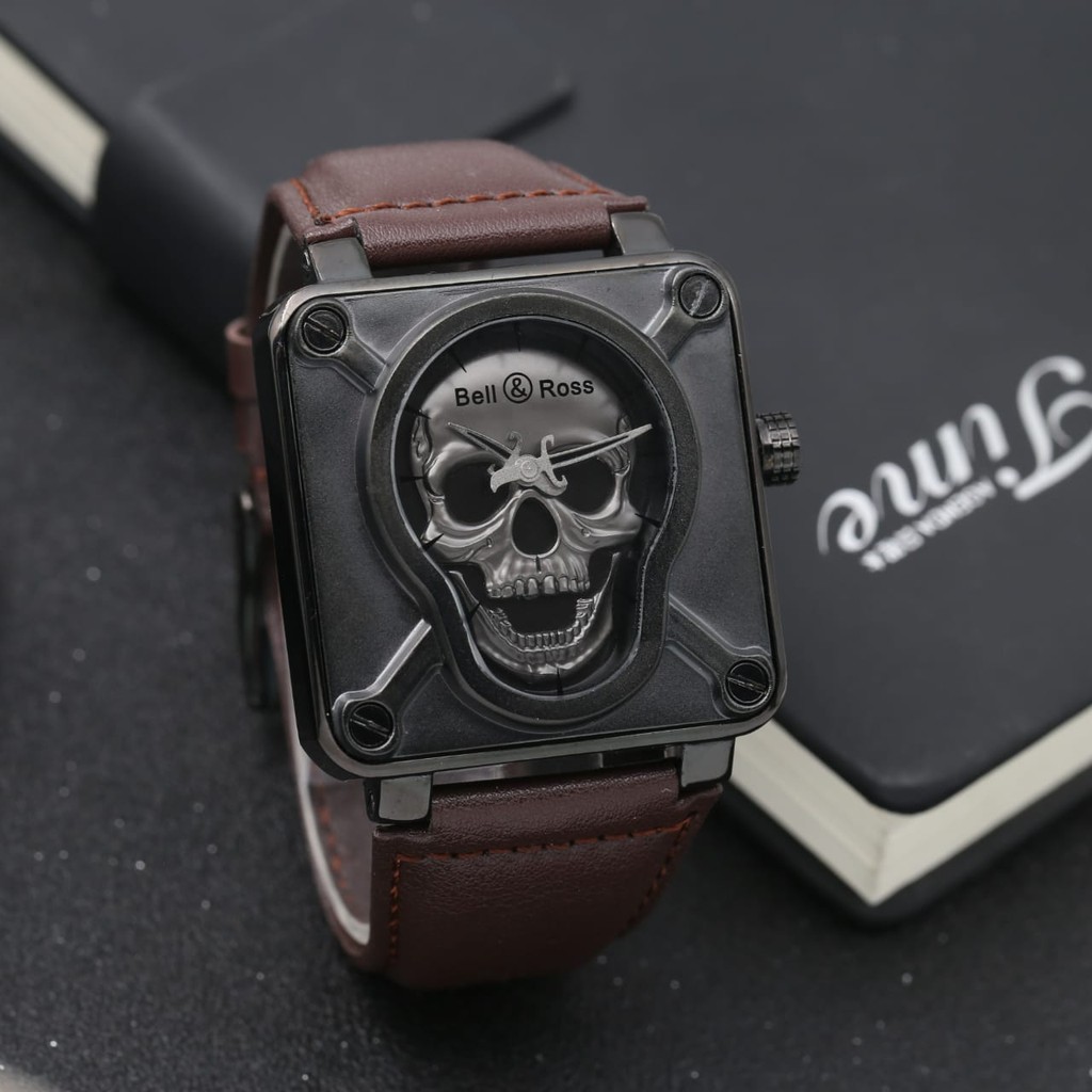 Jual Jam Tangan Pria Cowok Bell Ross Tengkorak Leather Black Silver Kaskus