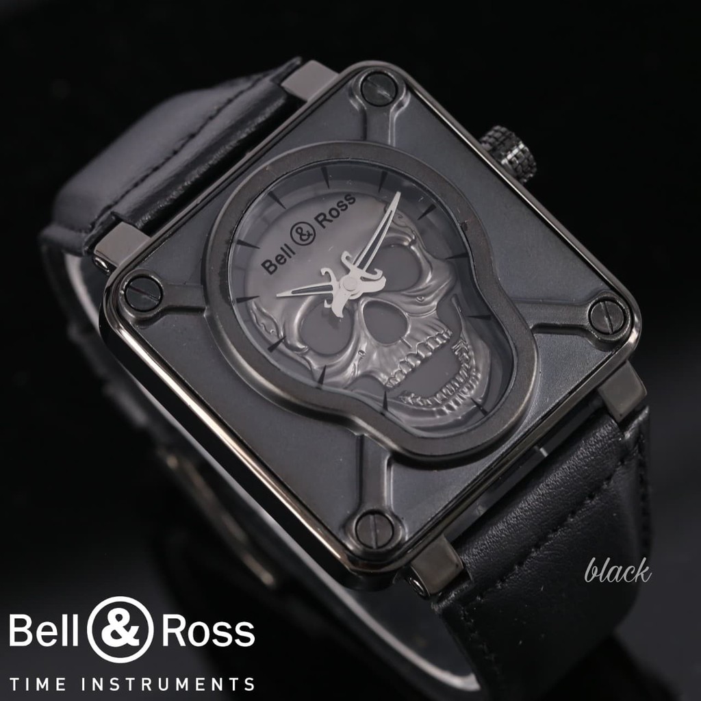 Best Item Jam Tangan Pria Cowok Bell Ross Tengkorak Leather Full Bla Shopee Indonesia