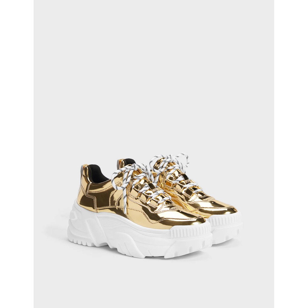 Bershka Sepatu Sneakers Bershka For Women Gold Metallic Shopee Indonesia