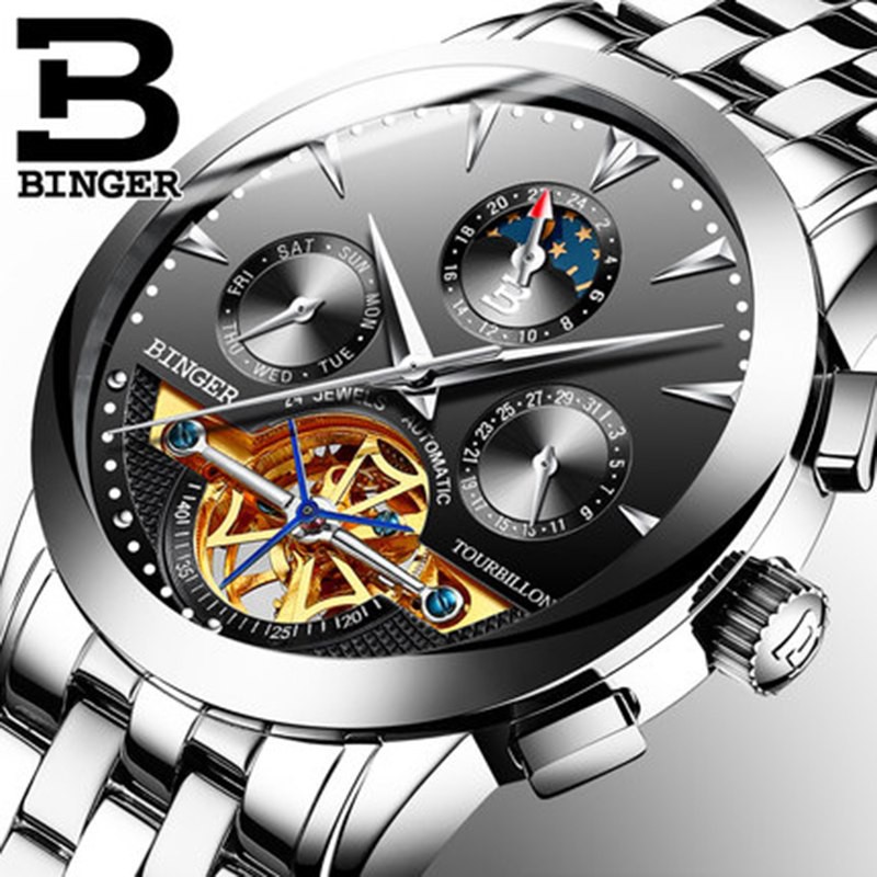 Ikiz Tourbillon Otomatik Izle Luks Ust Marka Saat Binger Erkek Mekanik Saatler Tam Celik Moon Phase Relogio Masculino Masculino Masculinos Relogiosmasculino Watch Aliexpress