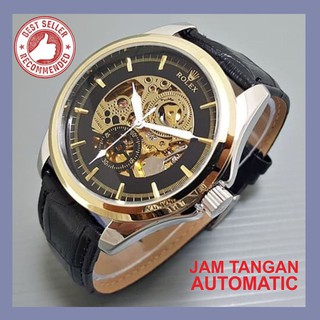 Jam Tangan Pria Rolex Automatic Transparan Angka Romawi Leather Black Shopee Indonesia