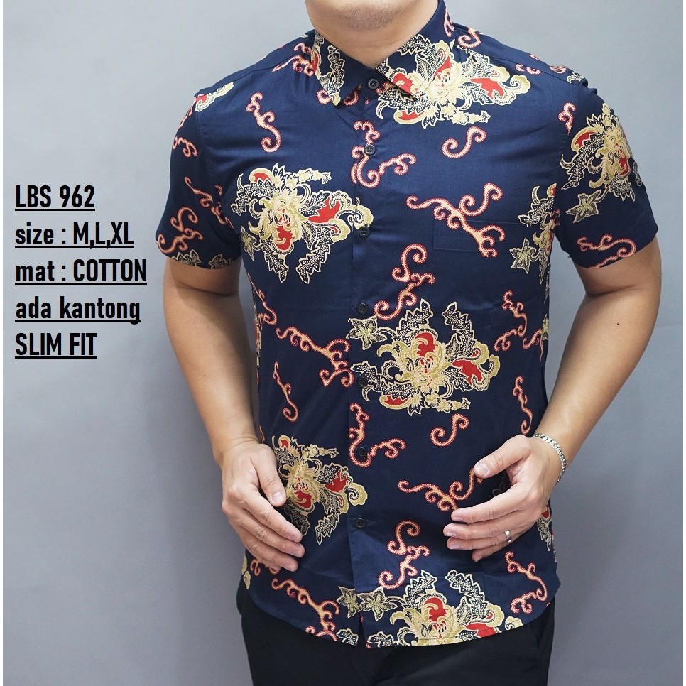Lbl Lbs 962 Atasan Busana Batik Cowok Warna Biru Dongker Cerah Kemeja Motif Floral Gold Shopee Indonesia