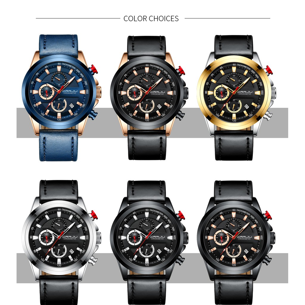 Crrju Jam Tangan Atas Merek Mewah Mode Tahan Air Olahraga Kuarsa Menonton Pria Kulit Biru Chronograph 2282 Shopee Indonesia