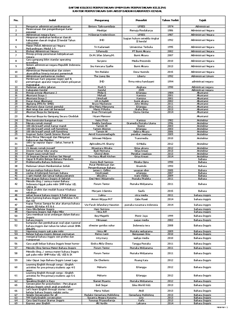 Daftar Koleksi Perpustakaan Kabupaten Kendal Pdf