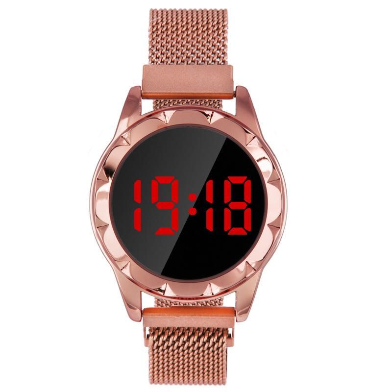 Satin Al Bos Bayanlar Kadinlarin Dijital Saat Kol Saati Icin Kirmizi Led Moda Tembel Orgu Manyetik Bant Elbise Saatler Tl15 18 Dhgate Comda