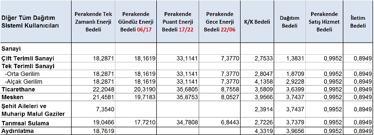 Tedas Elektrik Tarifeleri