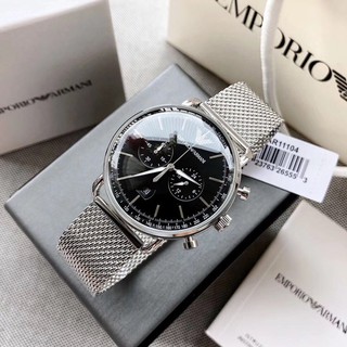 Emporio Armani Ar1808 Classic Silver Chronograph Mesh Band Mens Watch Popstok