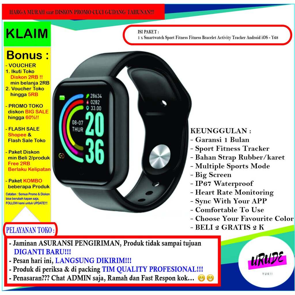 Smartwatch Sport Fitness Activity Tracker Android Ios Y68 Jam Tangan Original Terbaru Wanita Pria Shopee Indonesia