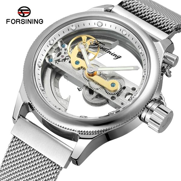 Forsining Hasir Kordon Mekanik Erkek Kol Saati Seffaf Iskelet Saat