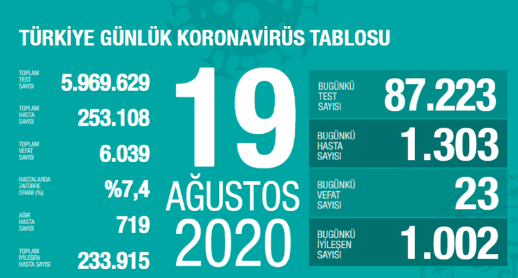 20 Agustos Turkiye Koronavirus Coronavirus Tablosu Koronavirus Il Il Gunluk Vaka Sayisi Ve Dunyada Son Durum Istanbul Ankara Gaziantep Diyarbakir Son Dakika Haberleri