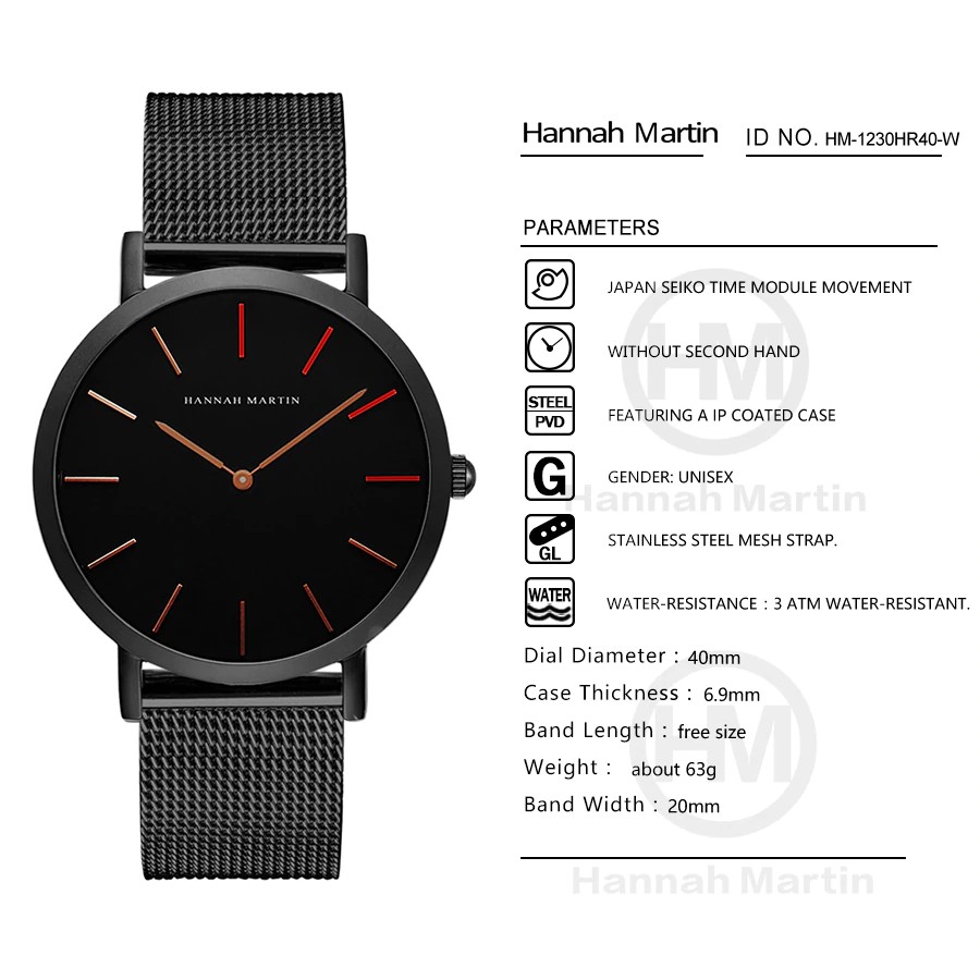 High Quality Japan Quartz Movement Stainless Steel Mesh Band Creative Waterproof Unisex Black Watch Shopee Indonesia