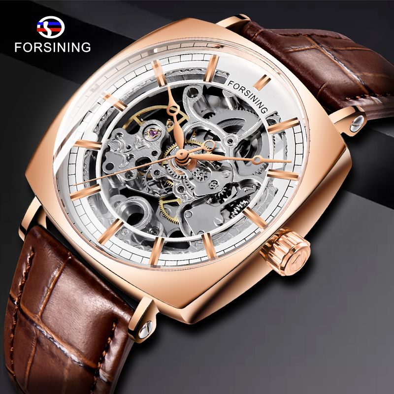 Satin Al Forsining Kahverengi Gercek Deri Moda Kraliyet Luks Altin Saat Seffaf Iskelet Erkekler Otomatik Mekanik Saatler Tl302 02 Dhgate Comda