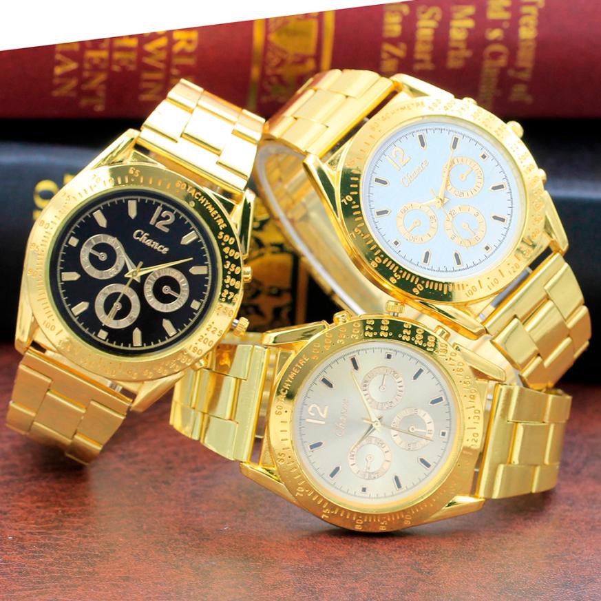 Golden Luxury Mens Black Dial Gold Stainless Steel Calendar Date Saat Quartz Analog Wrist Shopee Indonesia