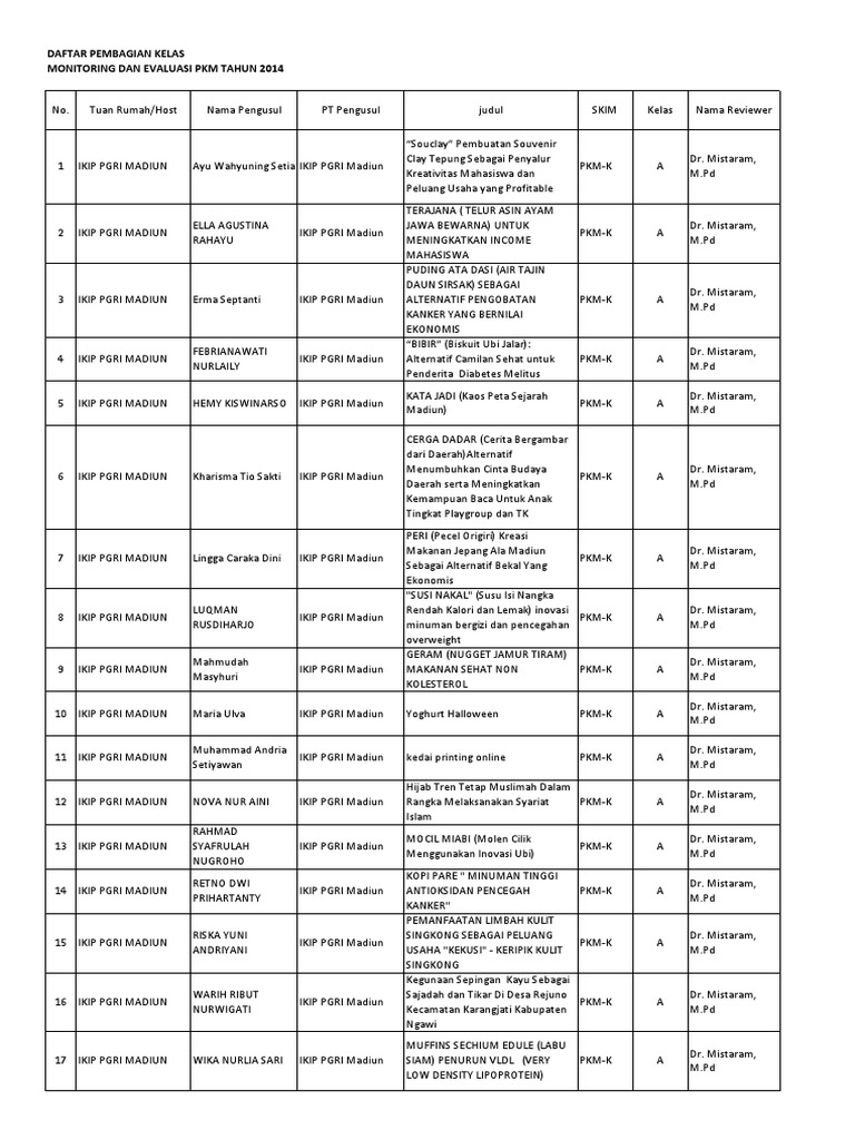 Pembagian Kelas Monev Pkm 2014