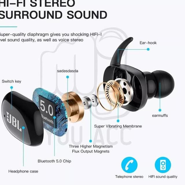 ʖ Tws V5 Jbl Earphone Headset Stereo Wireless Bluetooth Harman Kardon Shopee Indonesia