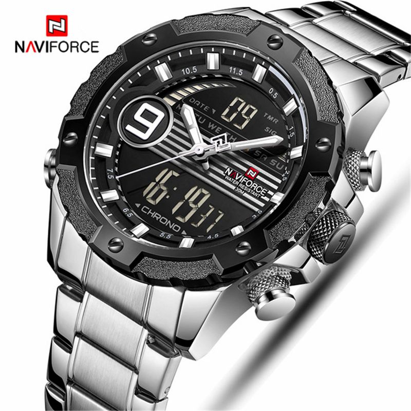 Naviforce Moda Kuvars Saatler Erkekler Icin Rahat Spor Cift Zaman Analog Dijital Saat Celik Kayis Su Gecirmez Cok Fonksiyonlu Saat Kuvars Saatler Aliexpress