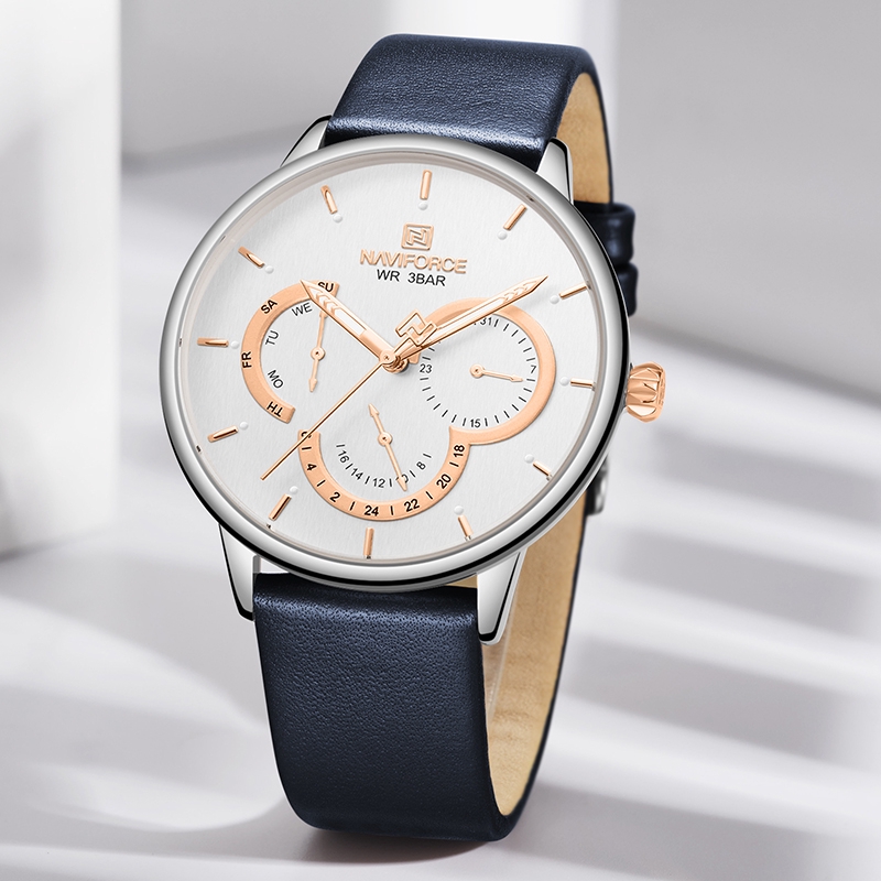 Naviforce Kadin Moda Mavi Quartz Saat Bayan Deri Kordonlu Saat Yuksek Kaliteli Rahat Su Gecirmez Saatler Hediye Esi Icin 5002