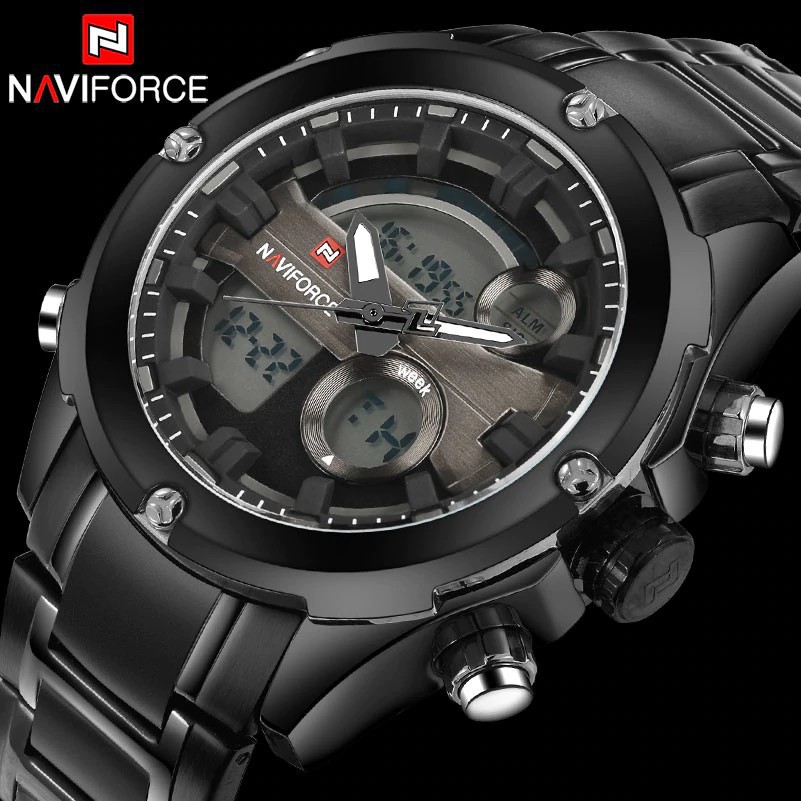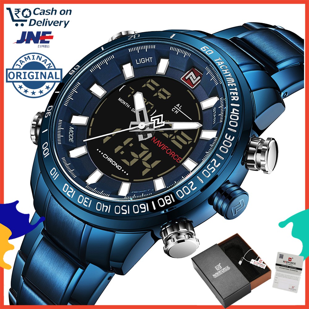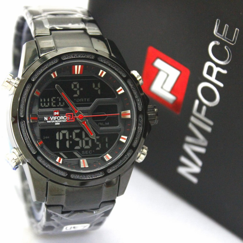 Naviforce Jam Tangan Dual Time Analog Digital Led Anti Air 30m Bahan Full Stainless Steel Shopee Indonesia
