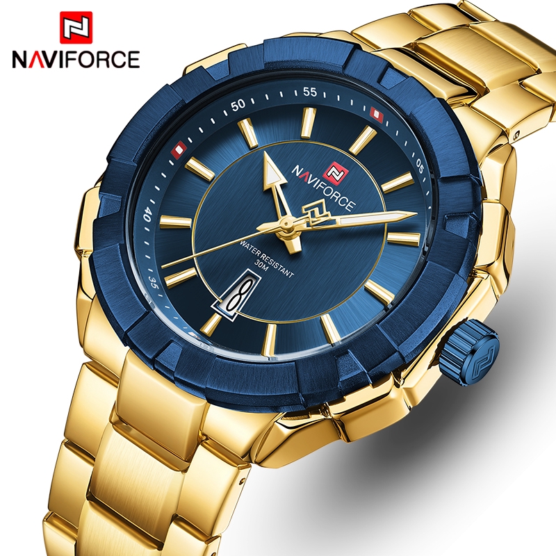 Naviforce 2020 Jam Tangan Pria Merk Mewah Warna Biru Emas Tali Stainless Steel Tahan Air Shopee Indonesia