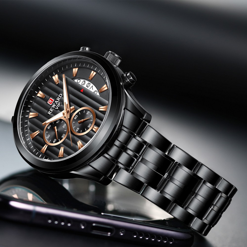 Reward Fashion Mens Business Watches Top Brand Luxury Full Steel Black Gold Quartz Watch Men Date Calendar Waterproof Wristwatch Shopee Indonesia