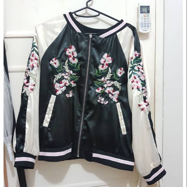 Stradivarius Emboidered Floral Reversible Bomber Jacket Shopee Indonesia