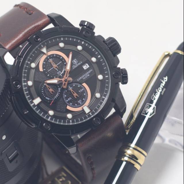 Jam Tangan Pria Tetonis 7745 Chronograph Rantai Bonus Kulit Orginal Shopee Indonesia