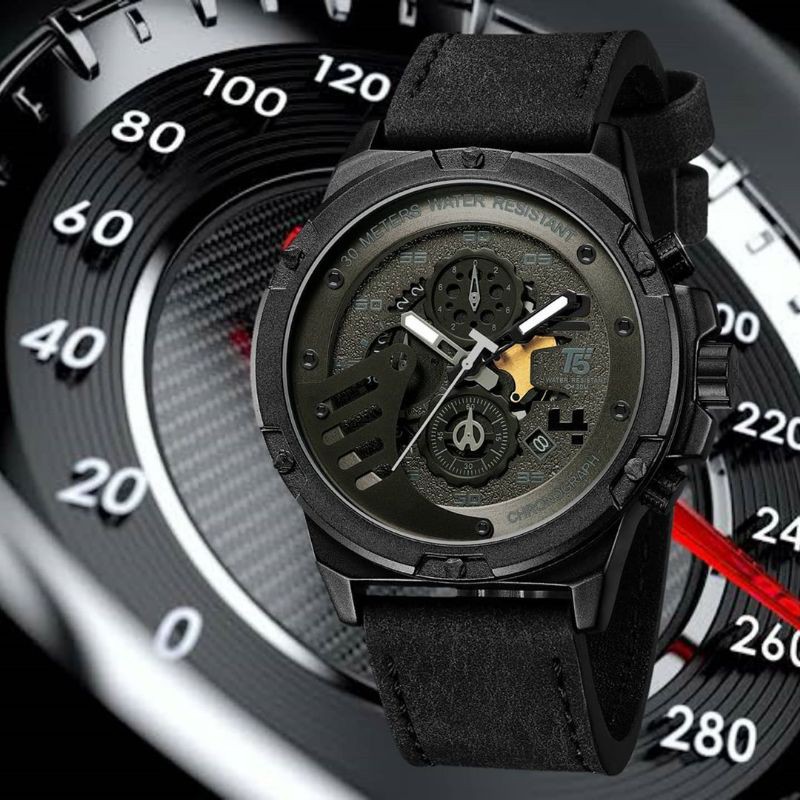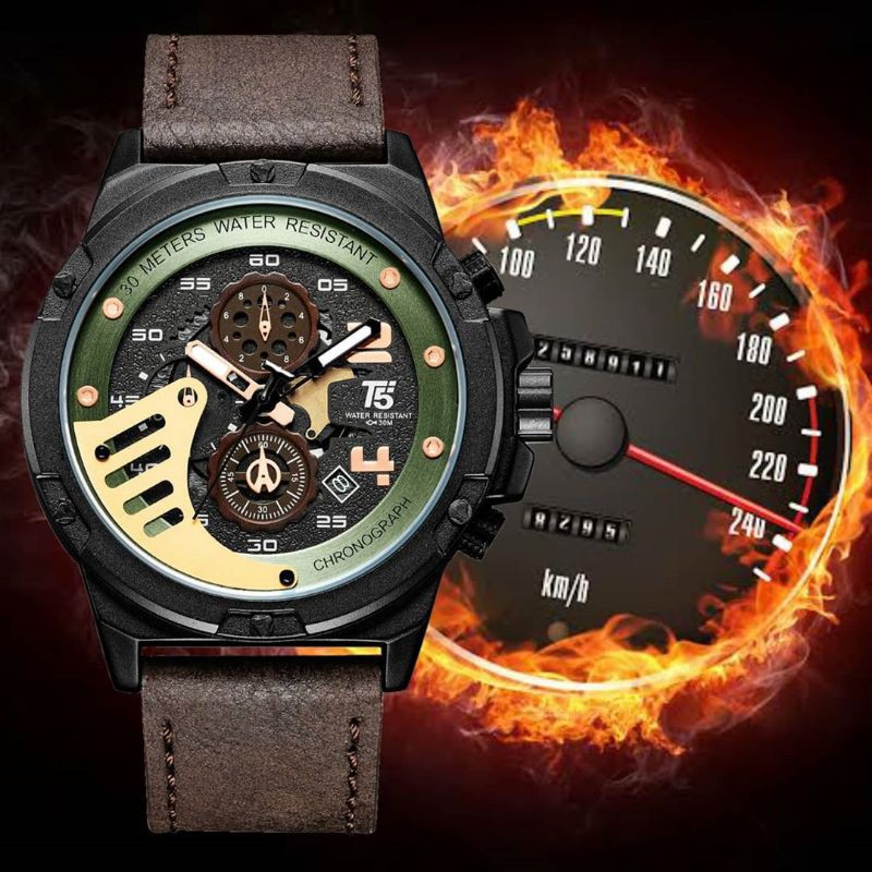 Jam Tangan Pria T5 100 Original Kronograf Jam Tangan Cowok Tahan Air Quartz Analog Strap Kulit Shopee Indonesia