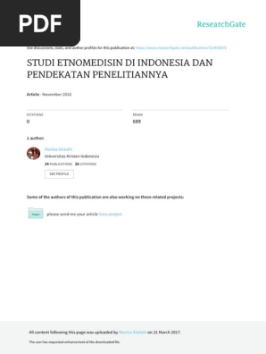 Pdf Studi Etnomedisin Di Indonesia Dan Pendekatan Penelitiannya