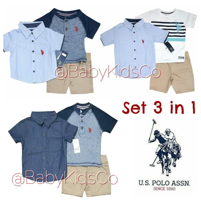 Terlaris Original U S Polo Assn 3 In 1 Set Setelan Kaos Kemeja Celana Anak 3in1 Shopee Indonesia