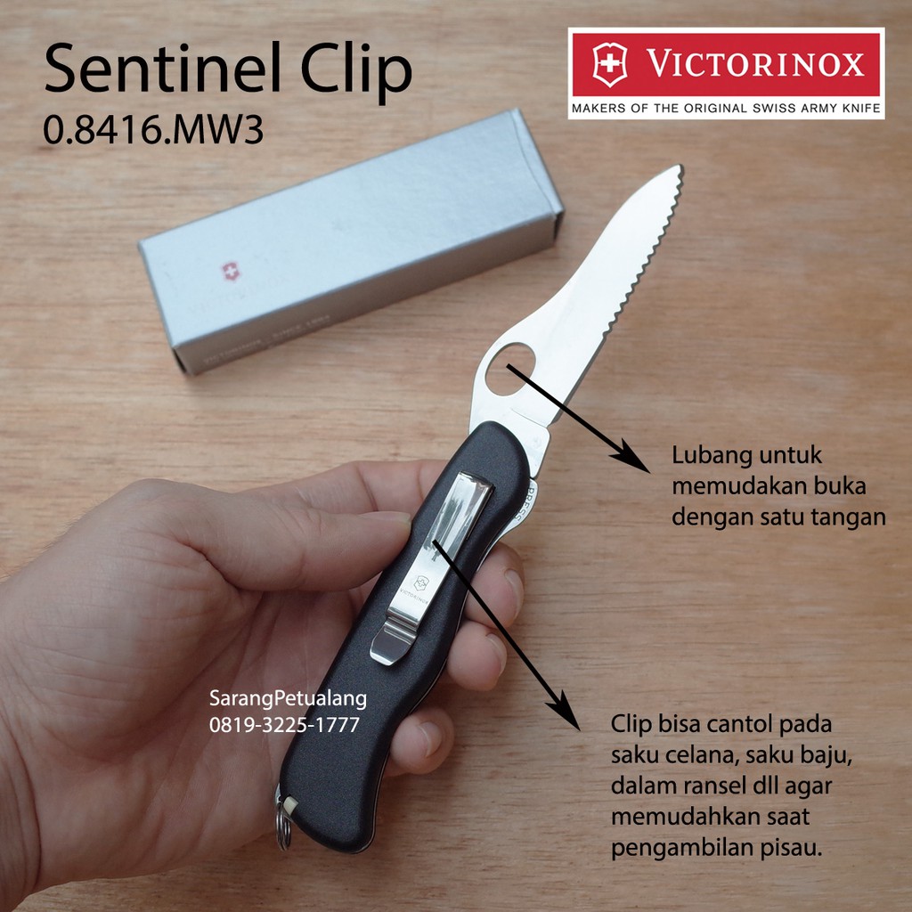 Victorinox Sentinel Clip One Hand Black 0 8416 Mw3 Sak Multitools Pisau Lipat Swiss Army Knife Shopee Indonesia